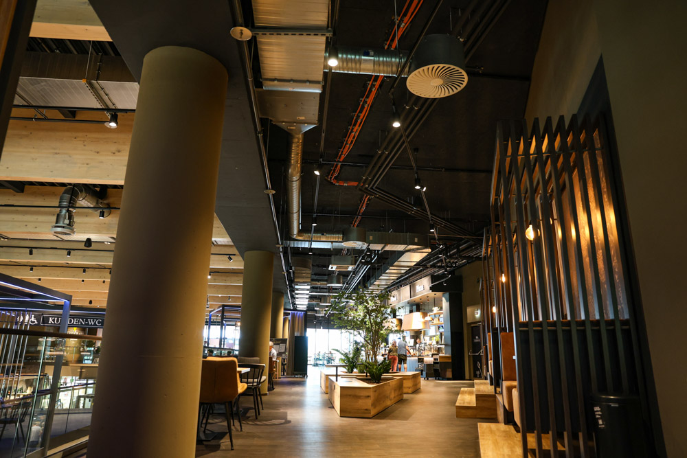 Die besondere Herausforderung: ein eng getakteter Bauzeitenplan und einige Planungsanpassungen, die vom Team Busam flexibel, lösungsorientiert und effizient umgesetzt werden konnten. Zusätzlich wurden eine komplexe Rauchableitung in der Verkaufshalle und zwei unterirdische Tunnel (Flucht- und Leerguttunnel) nahtlos in das Anlagenkonzept integriert.