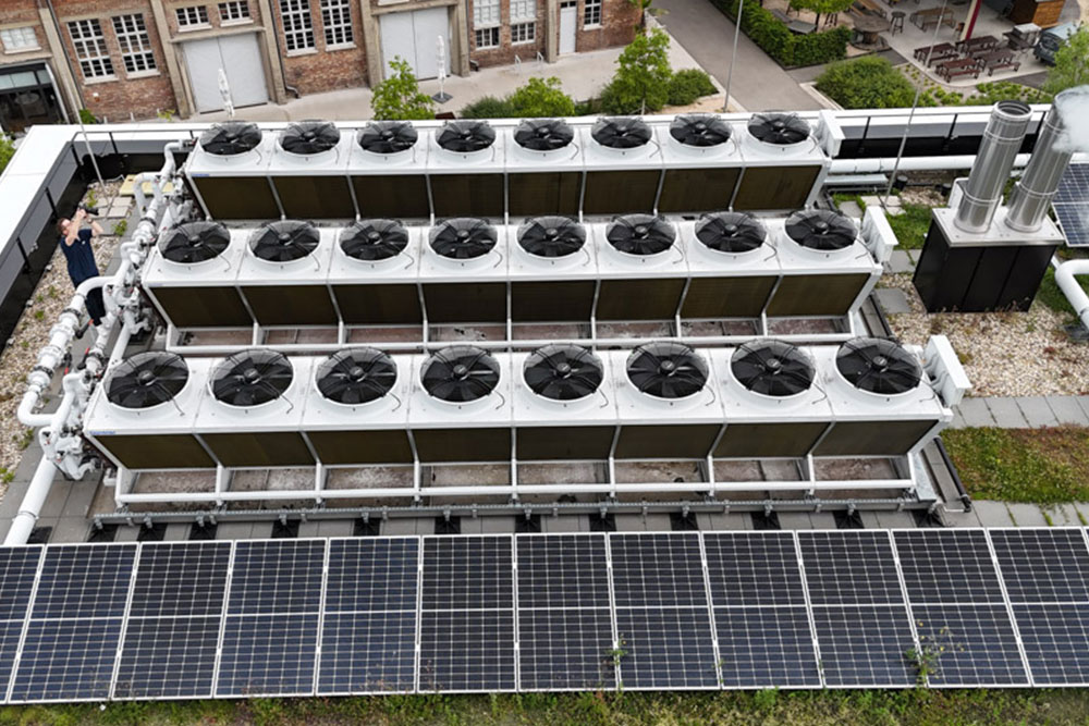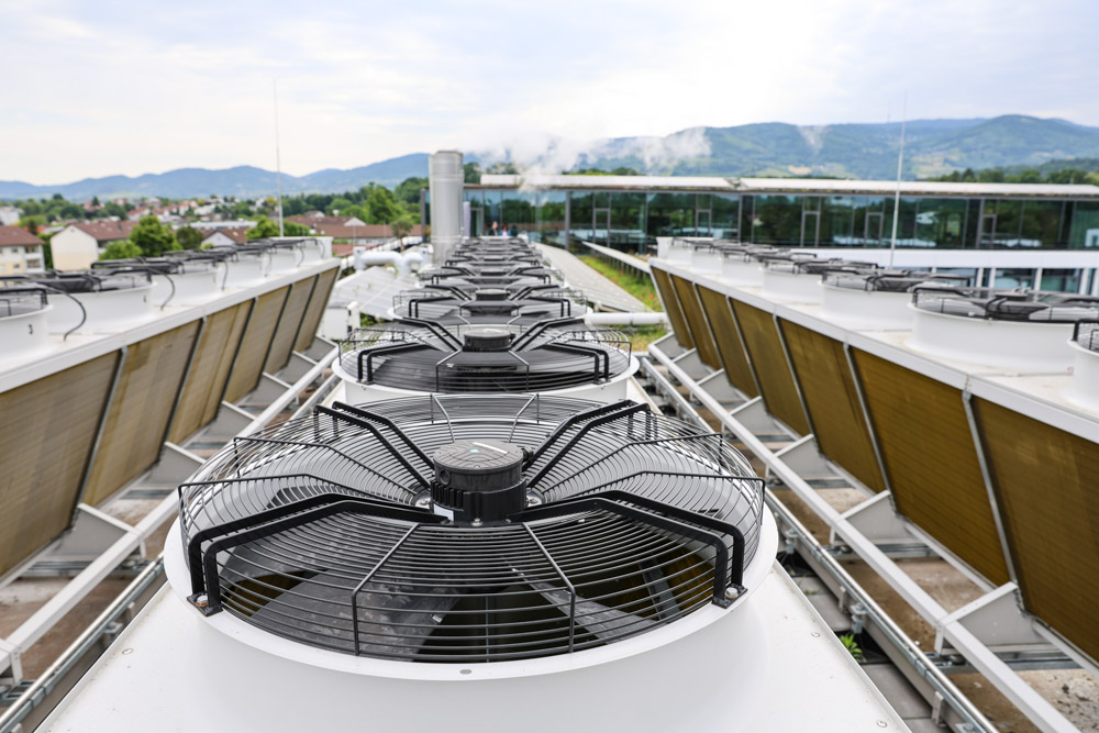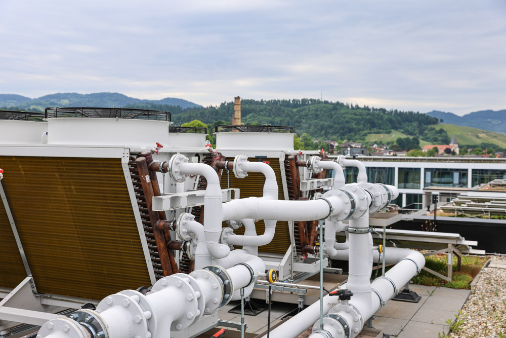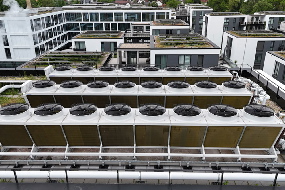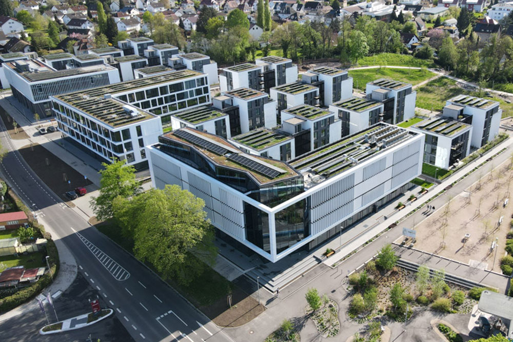Das hochmoderne Modellvorhaben wurde komplett CO2-neutral umgesetzt. Um Lüftung, Heizung und Kälte auf dem 20.000 Quadratmeter großen Areal kümmert sich die Firma Busam – unsere geplanten Anlagen erzeugen hier 1,3 MW regenerative Energie und 800 kW grüne Kälte.